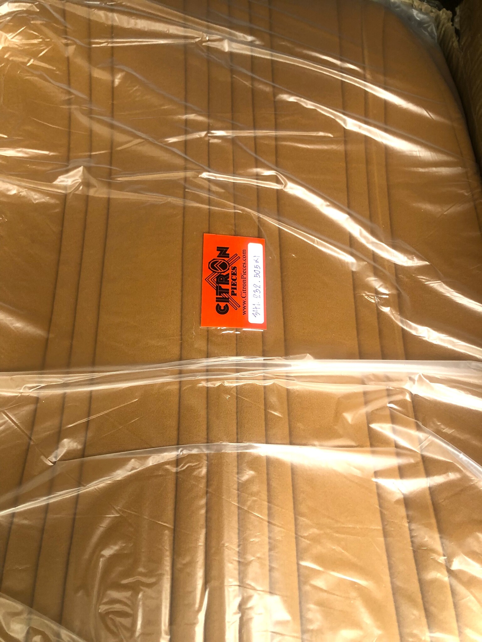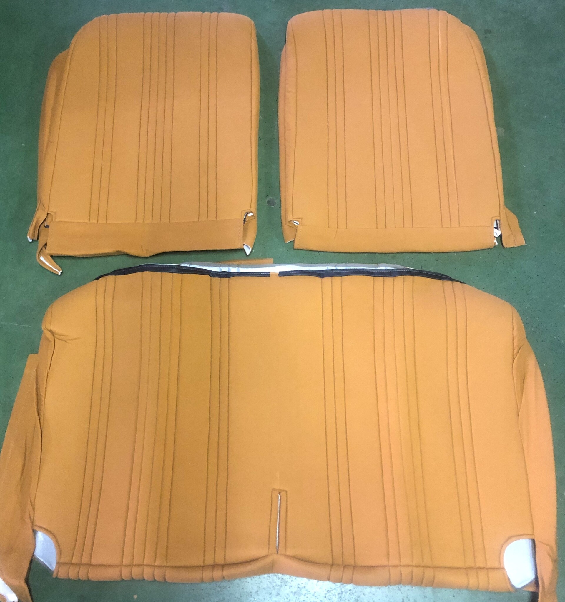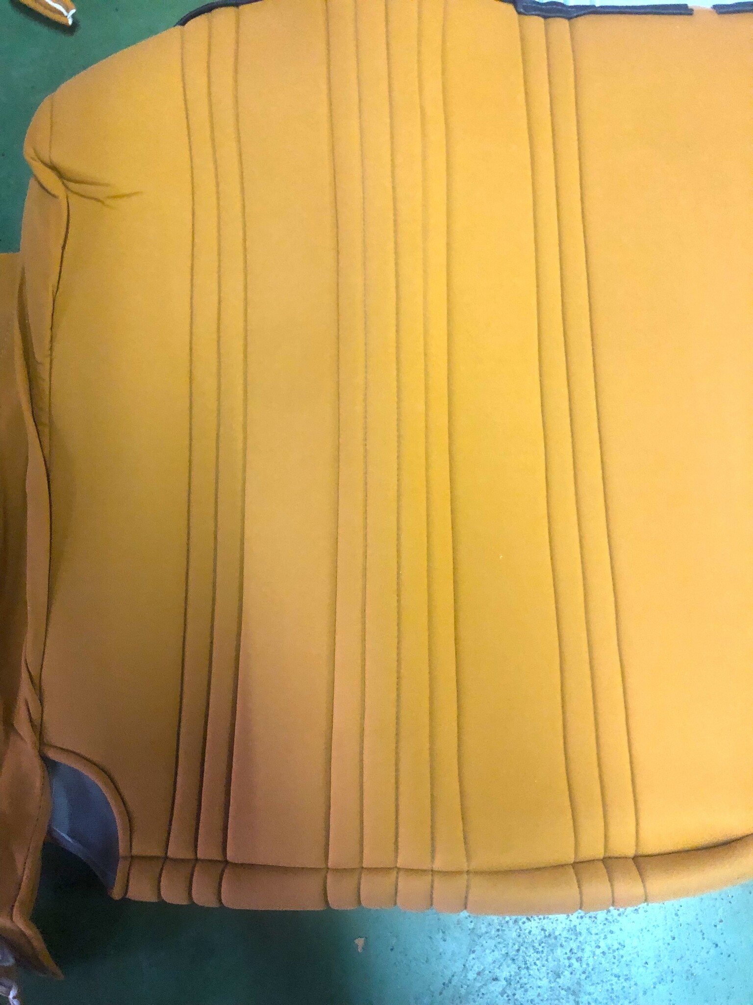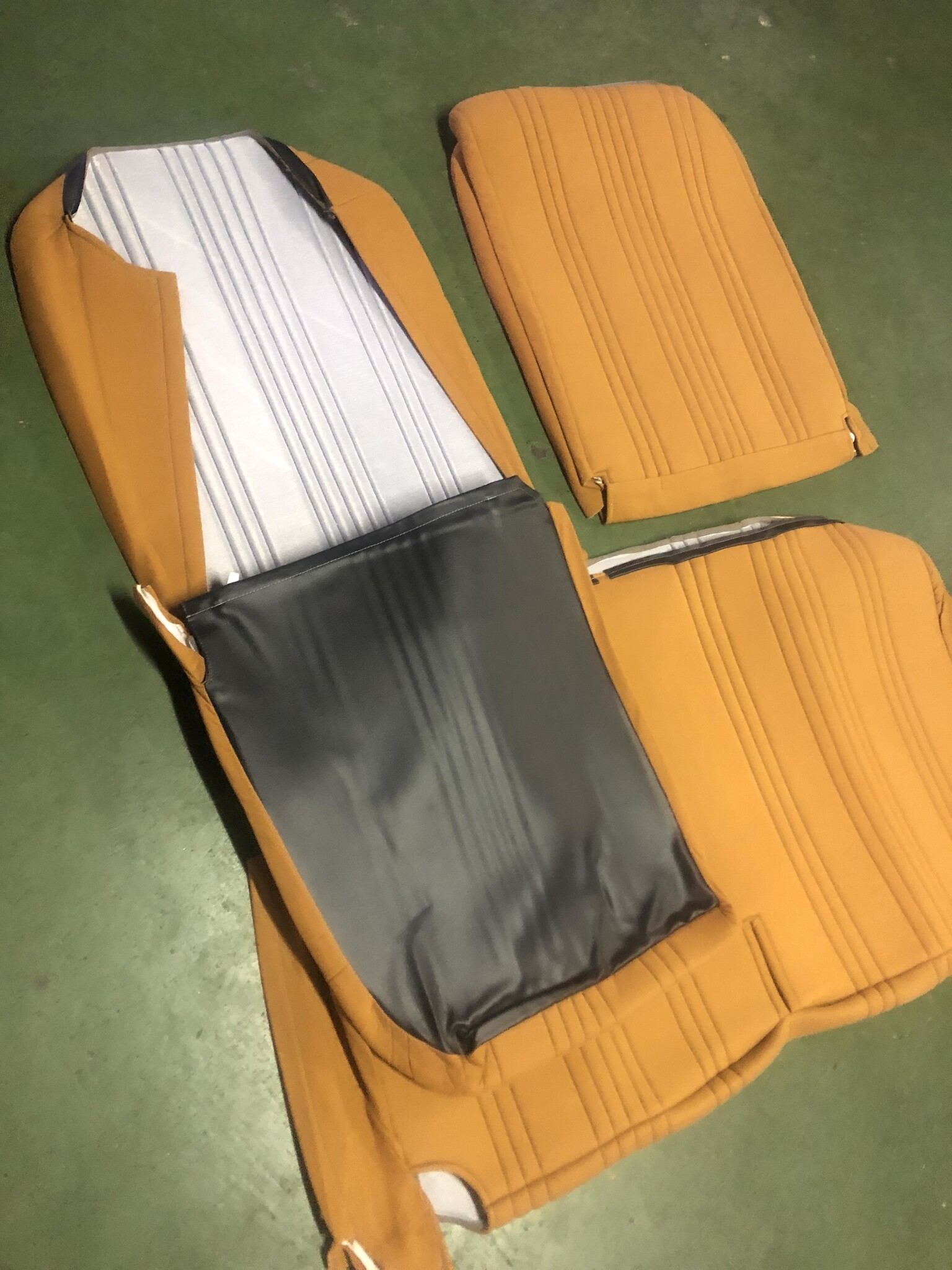 Citroën 2CV Satz mit 2 Vordersitzbezügen (asymmetrische Vordersitze) und 1 Rücksitzbezug aus gelbem Stoff, Citroën 2CV