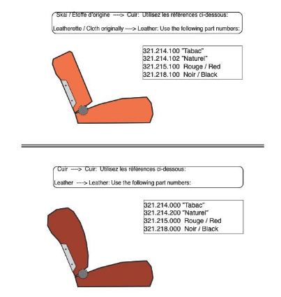 Original Sitzbezug Satz für Vordersitz leder-bezogen braun (Sitz Rückenlehne Abschlussfüllung für Schaum-Rücken) Citroën ID/DS