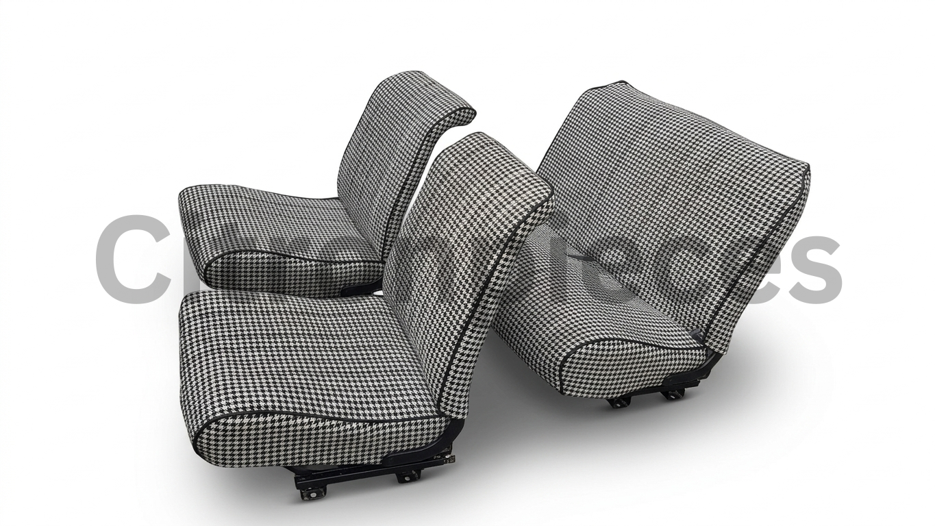 2CV Original seat cover set for rear bench in "pied de poule" black and white cloth Charleston Citroën 2CV - Copy