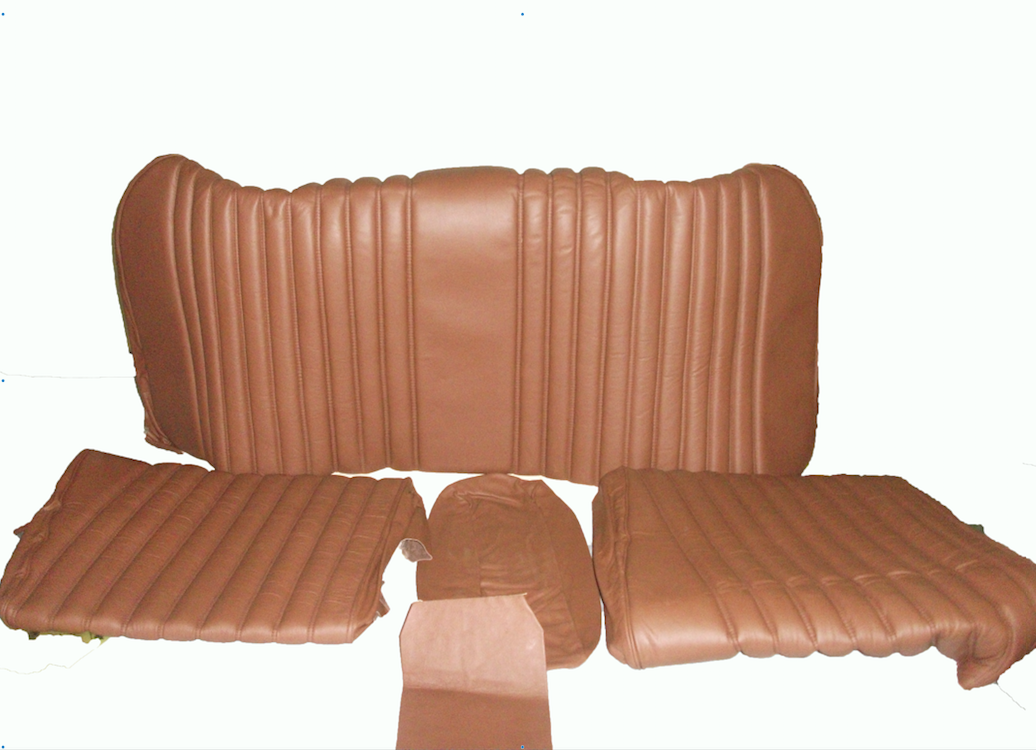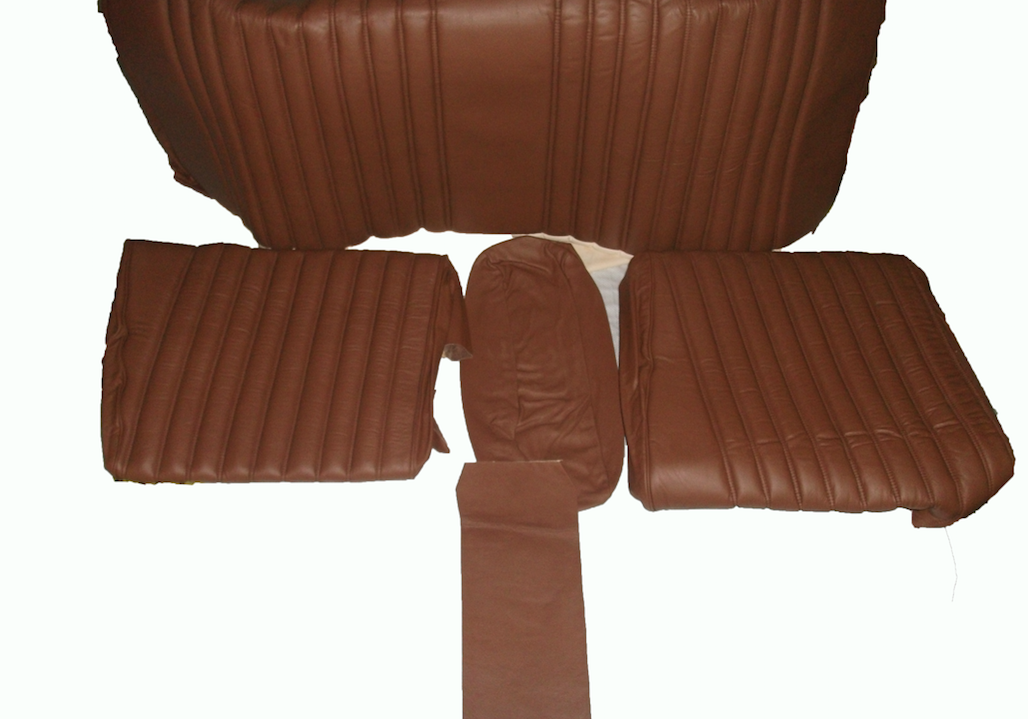 Original rear bench cover, brown leather (seat: 1 piece, back: 4 pieces, Berline),.