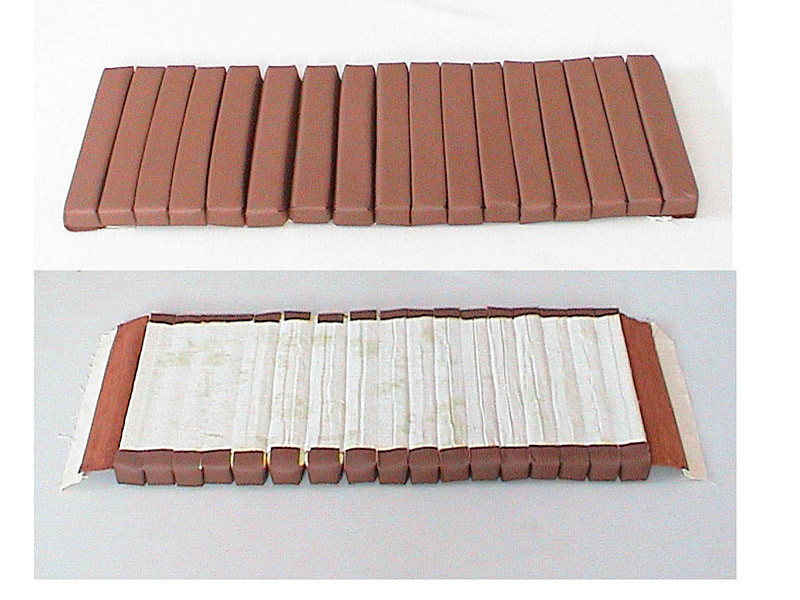 Hoes deel achterbank, 1 binnenste deel (17 reepjes), bruin leer, SM.